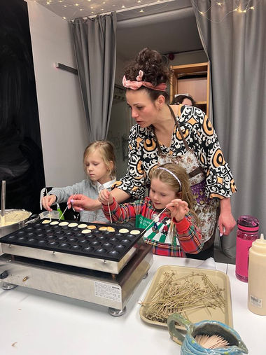 • Į veiksmą galime įtraukti ir svečius – visi gali pabandyti išsikepti savo blynelį!